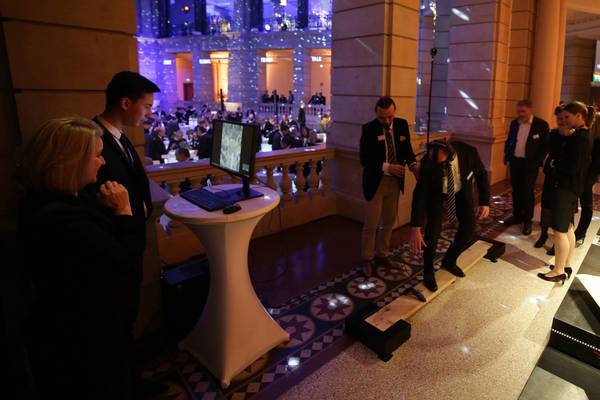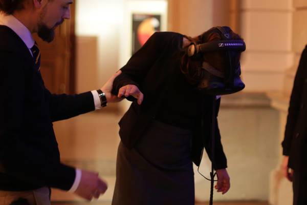 Das virtuelle Realitäts-Szenario „Happy New Year“, das wir für den Neujahrsempfang von KPMG umgesetzt haben, hat deren Gäste aus Politik, Wirtschaft und Kultur eindrucksvoll die Möglichkeiten Virtueller Realität erleben lassen, ohne sie zu überfordern. Ein idyllisches 360 Grad Panorama verschneiter Berge, gepaart mit der Aufgabe, auf einer Holzplanke über einem Abgrund zu balancieren, um ein Zepter aufzuheben. Durch die Erreichung dieses Zieles wurde ein Feuerwerk gezündet, über das Zepter konnten zusätzliche Raketen gestartet werden.